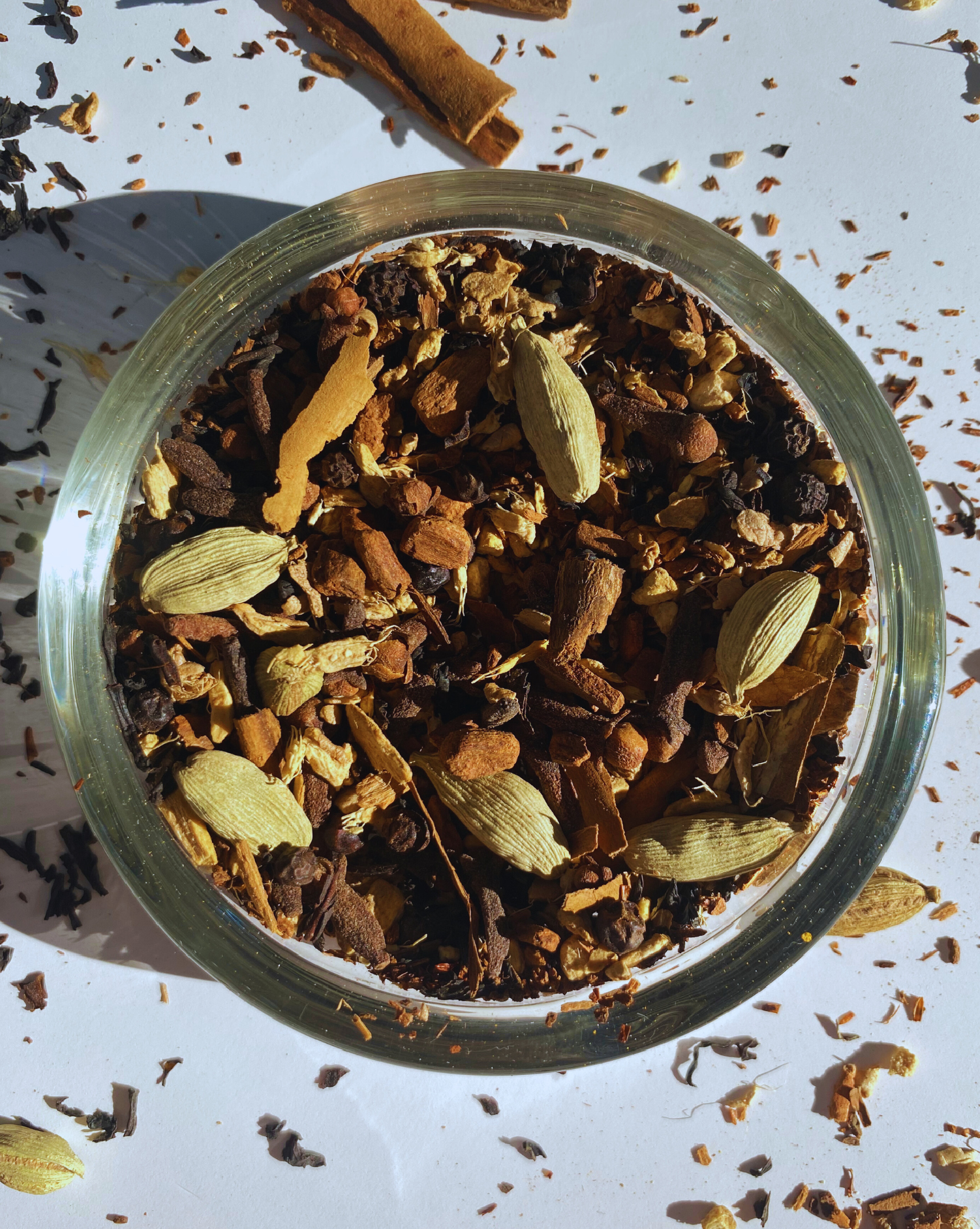 Our base Chai blend has all the warming, aromatic spices you love—cinnamon, cardamom, ginger, cloves, and black pepper—perfectly balanced for a cozy, caffeine-free cup. D.I.Y. Chai is a versatile option for adding in extra herbs like Fennel, Licorice root, or Ashwagandha, seamlessly masking their flavor while keeping the comforting Chai essence intact. Whether you're looking for a decaf Chai to enjoy or experimenting with herbal remedies, this customizable Chai is a simple way to bring warmth and wellness to your cup.