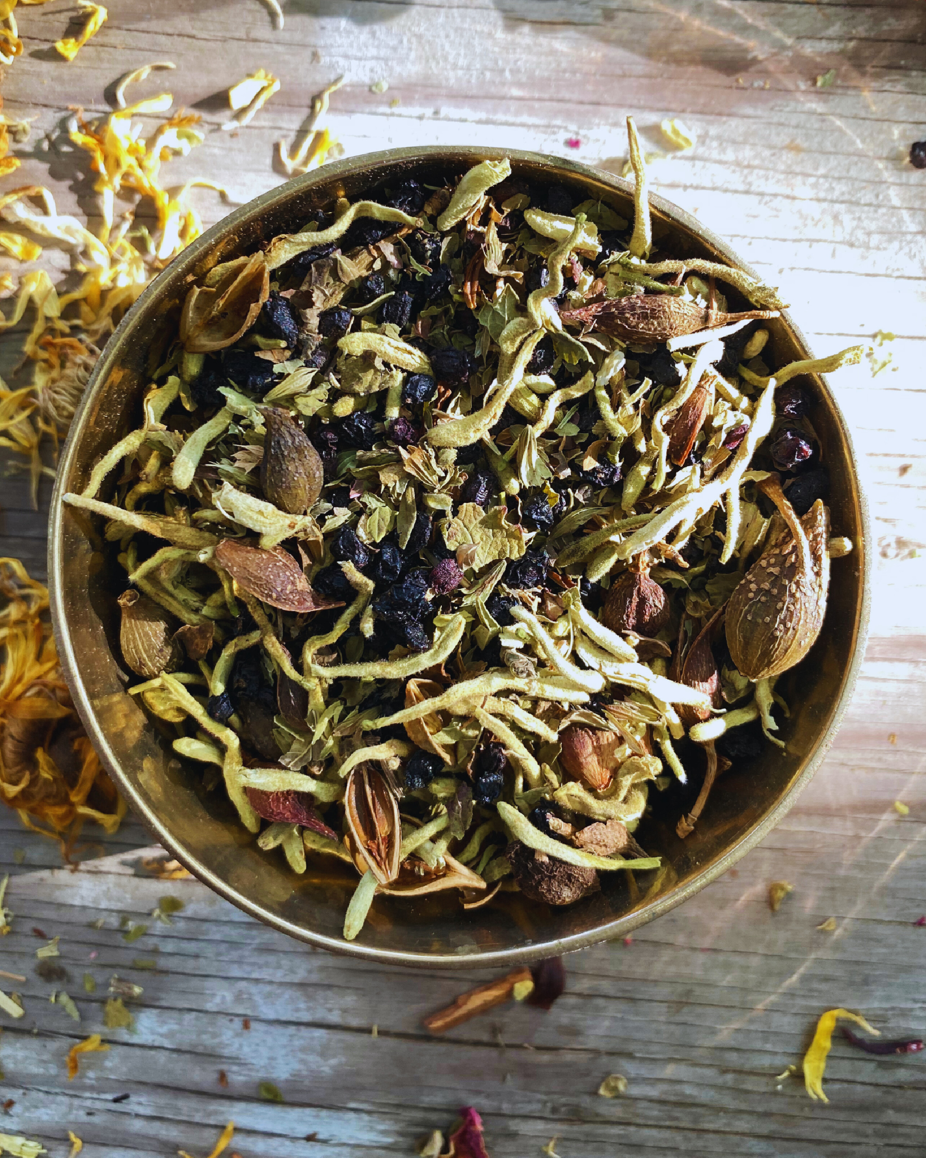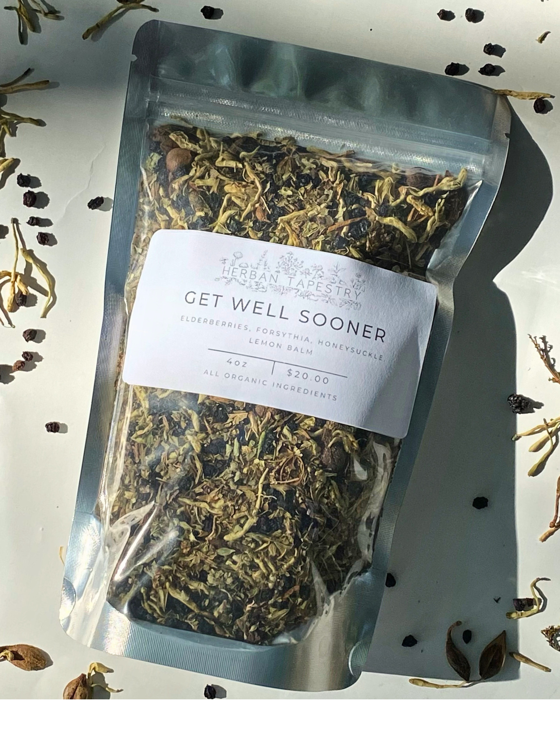 Get Well Sooner (formerly "Get Over It") is based on a Traditional Chinese Medicine (TCM) formula for recovery and rejuvenation during illness. This herbal blend has anti-viral properties and is the go-to blend when you're feeling under the weather.