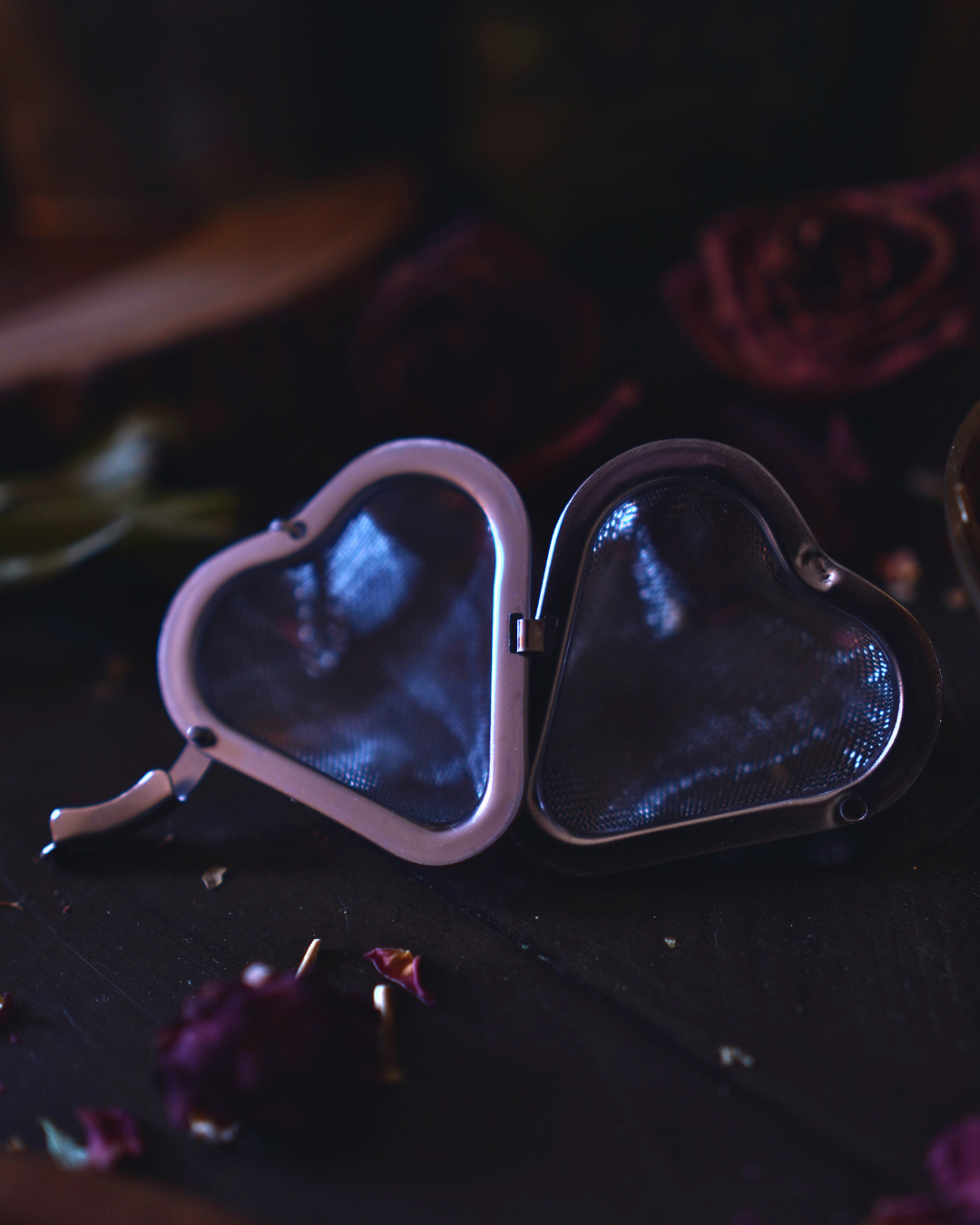A small heart-shaped mesh infuser made with stainless steel. Opens and secures with a clasp. Perfect for steeping a single cup of tea!