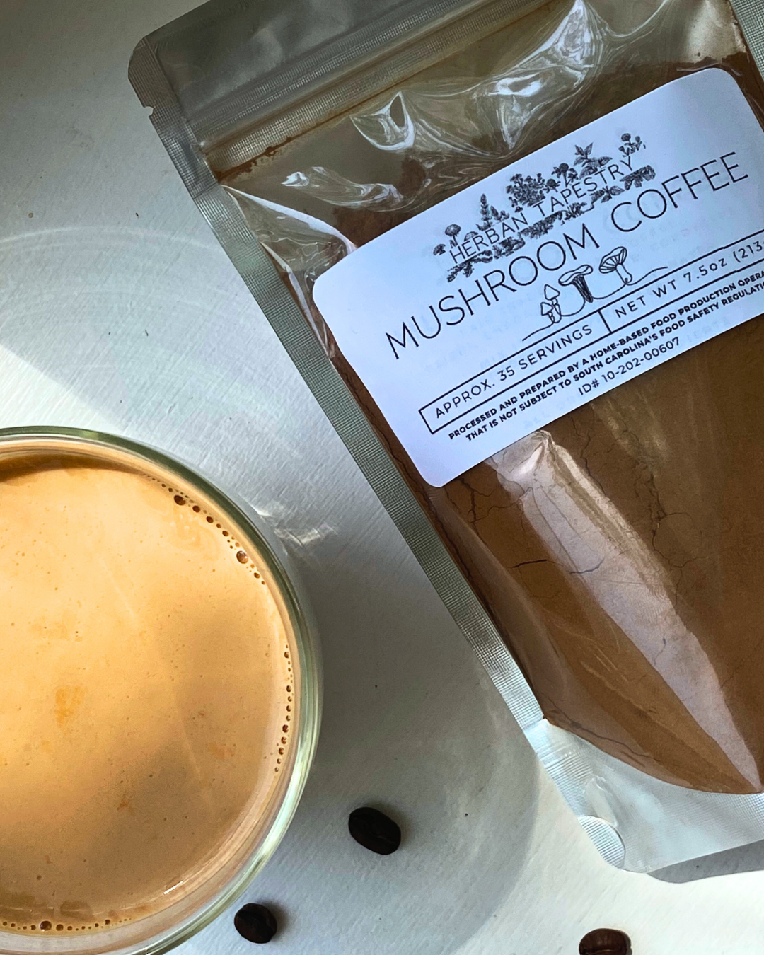We have tried several “commercial” mushroom coffees and just couldn’t enjoy them. We are trying to work plant and herbal into our daily routine. The mushroom coffee is better than grabbing a latte! I foam up almond milk with maple syrup and add it to the mix of hot water and mushroom blend and it is amazing. So glad we found this blend with some coffee in it. We love everything we have here from Herban Tapestry. Thank you.